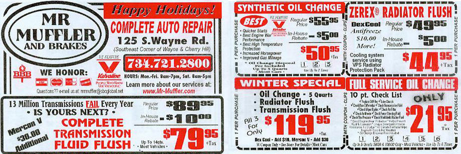 Valuable Coupons for Auto Service from Mr. Muffler located in Westland Michigan